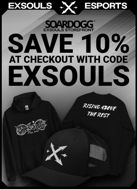The partnership between Exsouls Esports and SoarDogg represents a shared focus on identity, quality, and professional presentation within esports. SoarDogg is a custom apparel and merchandise provider specializing in fully tailored designs for esports organizations, gaming communities, creators, and brands—offering everything from jerseys and hoodies to lifestyle merch with an emphasis on premium materials and modern design. Through this collaboration, Exsouls gains a reliable platform to deliver high-quality team apparel and fan merchandise that reflects the organization’s brand and competitive standards. Together, Exsouls and SoarDogg aim to strengthen team identity, elevate fan engagement, and provide accessible, professionally crafted merch that allows players and supporters alike to represent Exsouls with pride both online and offline. Click the logo and/or panel shown here to visit their website + our storefront!
